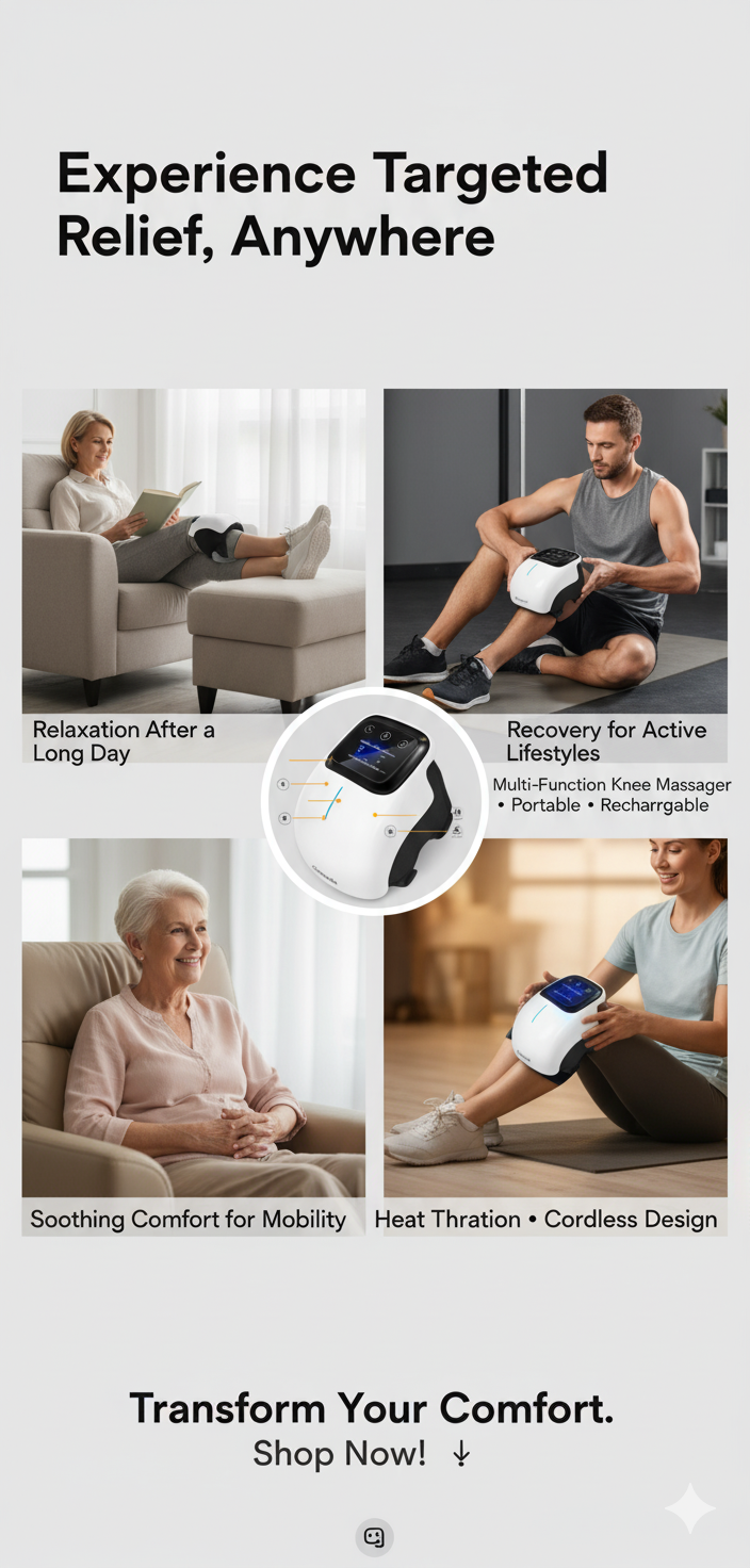 [Comodidad completa con calor, vibración y luz: experimente un cuidado relajante de las rodillas con calor ajustable, vibración suave y una función de luz relajante. Diseñado para promover la relajación y aliviar la tensión, este versátil dispositivo es perfecto para relajarse después de un largo día. Inalámbrico y portátil para máxima libertad: disfrute de un movimiento sin restricciones con el diseño inalámbrico y liviano del masajeador de rodillas Careella. Ya sea en casa, en la oficina o de viaje, su portabilidad garantiza comodidad dondequiera que vaya. Configuraciones personalizables y correas ajustables para un ajuste perfecto: adapte su relajación con tres niveles de calor (105 °F, 122 °F, 140 °F) y tres modos de vibración. Las correas ajustables garantizan un ajuste seguro y cómodo para rodillas de varios tamaños, lo que mejora la experiencia del usuario. Pantalla LED intuitiva y diseño recargable: ajuste fácilmente la configuración con la pantalla LED intuitiva que ofrece un control sin esfuerzo de los modos de calor y vibración. La batería recargable incorporada proporciona múltiples sesiones con una sola carga con carga rápida Tipo-C para mayor comodidad. Un regalo considerado para la comodidad y la relajación: ya sea para cumpleaños, vacaciones o cualquier ocasión, el masajeador de rodillas Careella es un regalo perfecto. Comparte la alegría de la comodidad y el bienestar con tus seres queridos y demuéstrales cuánto te importan.