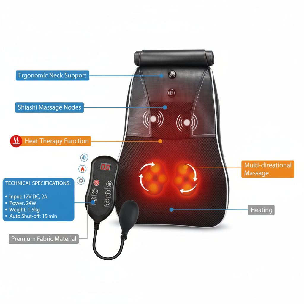 Masajeador Shiatsu de Cuello y Espalda hlthsky con Calor. Masajeador de Cuello para Aliviar el Dolor de Tejido Profundo. Almohada de Masaje de Amasamiento 3D para Espalda, Cuello, Hombros y Piernas. Regalos para Mamá y Papá.