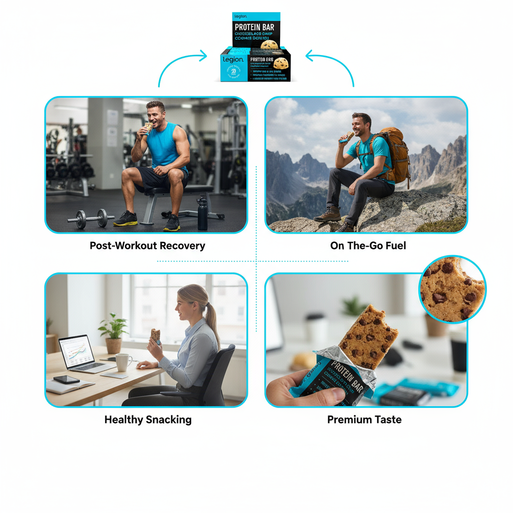Fuel your body with Legion Protein Bar Chocolate Chip Cookie Dough. Our protein-packed delight features real food "I-cant-believe-its-not-candy" taste that satisfies your taste buds while helping you reach your fitness goals faster.Power up with a protein boost that contains an impressive 20 grams of high-quality protein with our delicious protein bars’ low sugar high protein formula. Crafted from a blend of whey isolate whey hydrolysate & whey concentrate our low sugar protein bars give you the power you need to crush your fitness goals. Our high protein bars can seamlessly fit into even the strictest of meal plans so you wont have to compromise on taste or nutrition.One protein bar contains12 grams of fat from healthy plant foods including cassava almonds & sunflower and is naturally sweetened with stevia & just 4 grams (one teaspoon) of added sugar to help you stay on track with your health journey. We made sure not to include gluten artificial sweeteners flavors dyes and other chemical junk in our healthy protein bars. This is because we believe in fueling your body with wholesome ingredients that propel you toward greatness.Experience the ease of digestion that our healthy protein snacks offer. Packed with 9 grams of prebiotic fiber our low calorie protein bars support gut health providing sustained energy without bloating or cramping.Unleash your inner fitness beast with Legion. Join the league of over 250000 satisfied individuals who have unlocked their fitness potential with our all-natural sports supplements. Were not just about the gains; were about empowering you with the knowledge & tools to become the best version of yourself.Grab a Legion Protein Bar Chocolate Chip Cookie Dough today and taste the winning combination of incredible flavor and high-quality nutrition. Elevate your workouts nourish your body and achieve greatness – one delicious bite at a time. Get yours now!